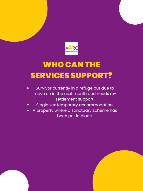 • Survivor currently in a refuge but due to move on in the next month and needs re-settlement support.