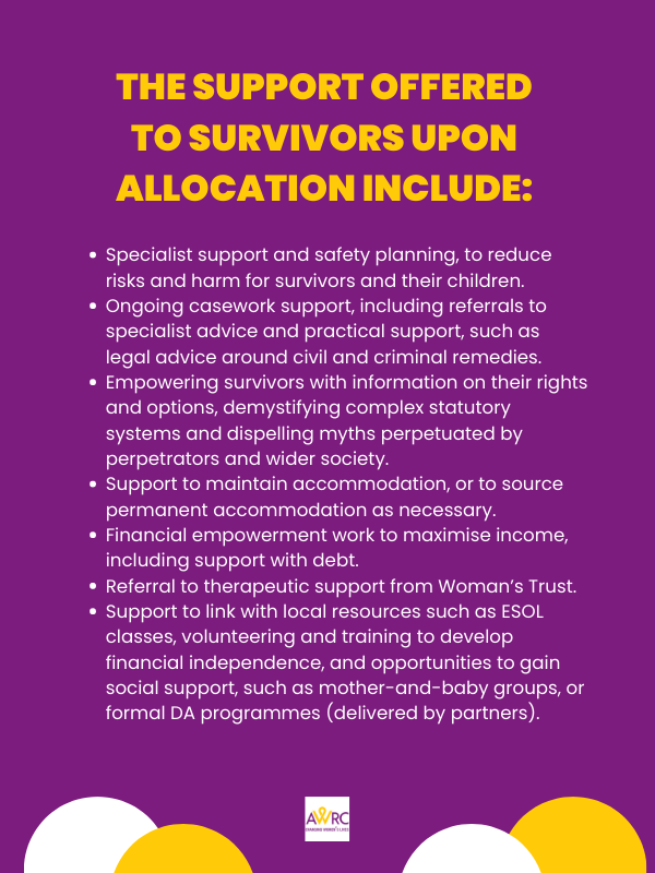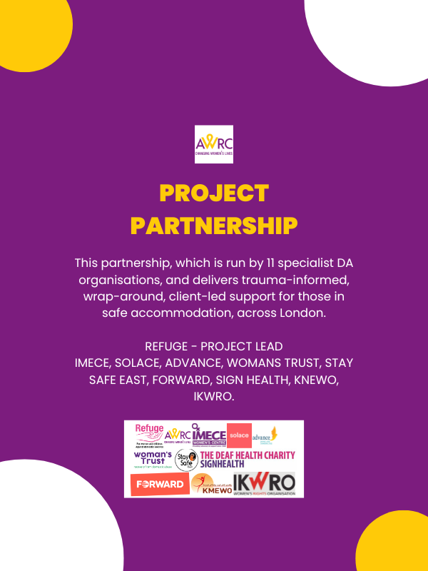 This partnership, which is run by 11 specialist DA organisations, and delivers trauma-informed, wrap-around, client-led support for those in safe accommodation, across London.