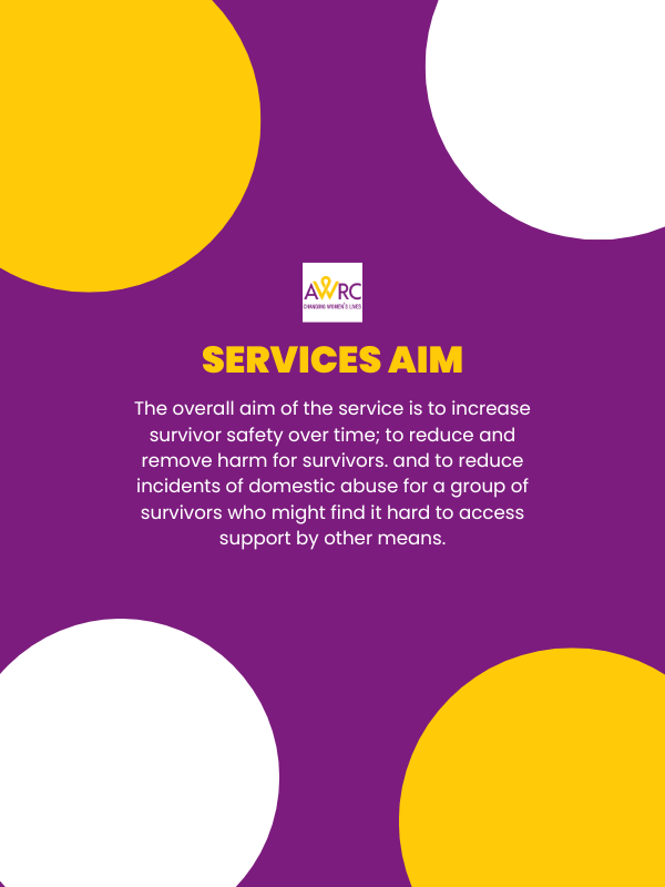 The overall aim of the service is to increase survivor safety over time; to reduce and remove harm for survivors. and to reduce incidents of domestic abuse for a group of survivors who might find it hard to access support by other means.