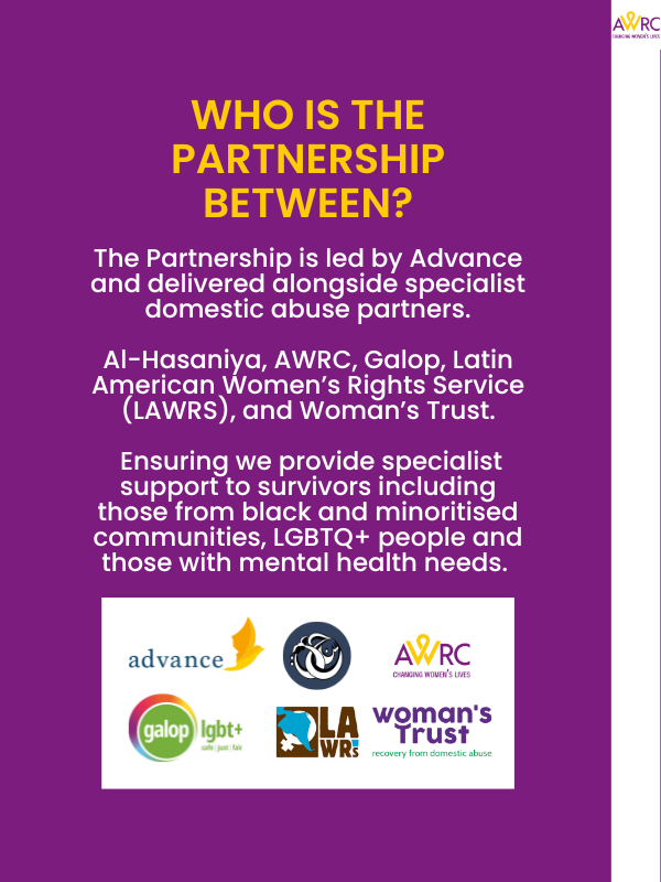 The Partnership is led by Advance and delivered alongside specialist domestic abuse partners: